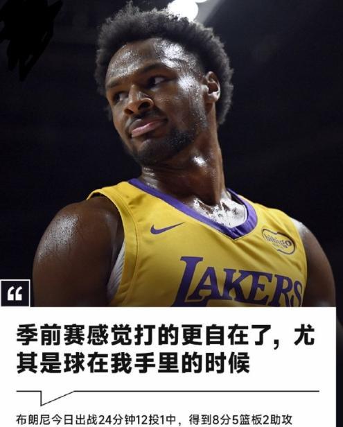 10月4日,NBA湖人季前赛首场比赛对阵太阳,在詹姆斯,东契奇等人缺阵的情况下,布朗尼率队81比103不敌太阳!