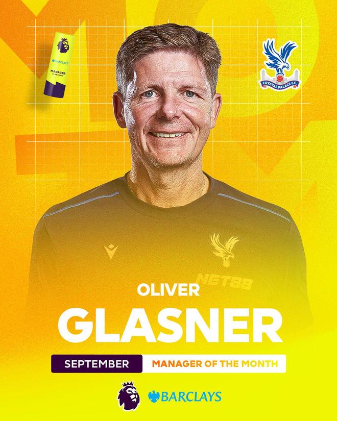 生涯首次!官方:水晶宫主帅格拉斯纳荣膺九月英超最佳教练