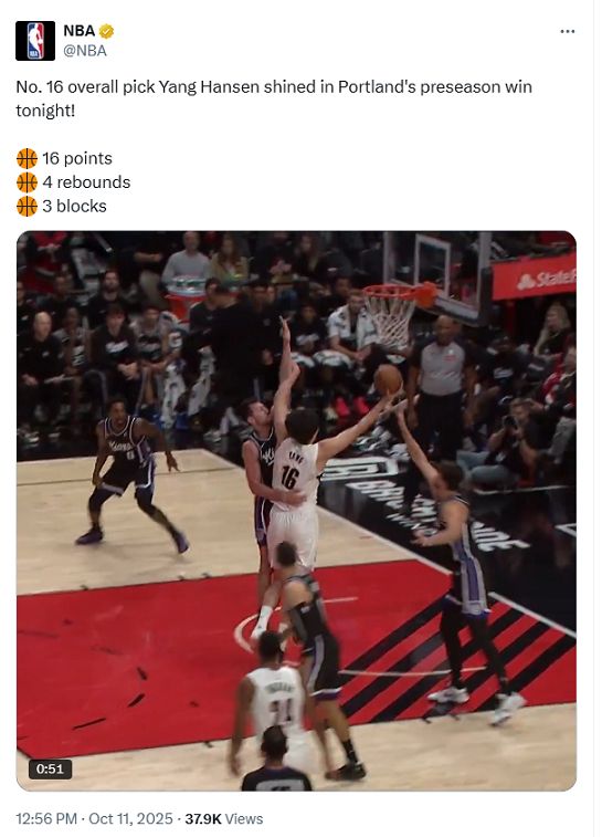 - NBA | 杨瀚森单节独砍14分,立刻登上开拓者官方海报封面