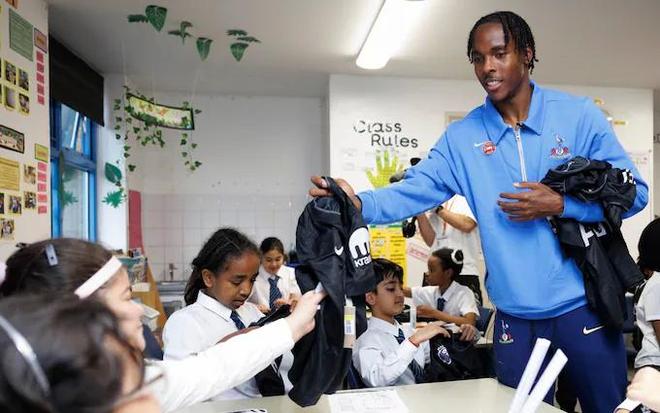 今年8月,特尔在欧洲超级杯对阵巴黎圣日耳曼的点球大战中罚丢点球,随后在社交媒体上遭到种族歧视。但这并没有让他退缩——上周他代表法国U21再次主罚点球并命中,还承诺未来愿意再次为热刺罚点球。特尔提到已故的洛杉矶湖人球星科比-布莱恩特时对《电讯报》说道:“我还会再罚点球。如果明年我们再次踢超级杯,我还会再罚一次,我不会害怕。“我很喜欢科比-布莱恩特,我经常读他的故事,他始终坚持‘不断尝试’。要想成功,你必须去尝试。成功的路上难免犯错,所以我能接受犯错。如果我这次没进球,我会回来,下次我一定能进。”不幸的是,特尔表示在罚丢点球后遭遇种族歧视并不让他意外——他在前东家拜仁慕尼黑时就经历过类似情况。他认为社交媒体公司应该采取更多措施解决这个问题。特尔说:“我并不是特别震惊,但这些恶毒的评论依然会让你受伤。当时在拜仁也有类似情况,所以现在我尽量保护自己——不看、不听,只专注于我在做的事。每天努力、努力、再努力。”“我觉得社交媒体公司必须做得更多,因为社交媒体太开放了。只要我想做坏事,我可以换个名字注册账号,然后随便骂人。这太容易了。大家太容易对别人不尊重了。所以我希望他们能保护我们,保护孩子,保护每个人,因为没有人应该遭受那种待遇。”当被问到这次经历是否让他在为法国U21再次主罚点球时犹豫过,特尔回答道:“是的,有想过。但我心想‘我会再试一次,我会再试、再试’。于是我就那样做了。当然,压力很大,但关键是自信。我脑子里想着‘我不想再罚丢了’,于是我罚进了。”在托特纳姆热刺基金会组织的活动中,特尔显然很享受与学生共度时光,并为他们创造美好回忆。他不仅抽出时间参加活动,还自掏腰包买了40件热刺球衣,亲手分发并签名。