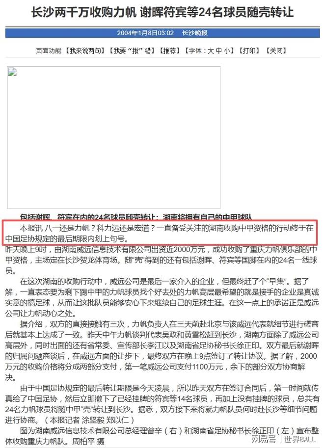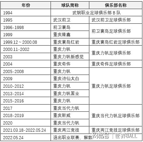 序言六个赛季排名位居降级区,四个赛季倒数第一,却只降级两次,这样的“好事”,着实发生在一支顶级联赛球队身上。职业联赛三十年,没有谁的运气好得过重庆两江竞技。我们来数一数重庆队的“好运”。2003赛季,重庆力帆排名第13。按照当时“2003赛季名次+2002赛季名次×0.5之和前三高者降级”的奇葩规定,重庆力帆应当降级;即便用正常的逻辑,根据2004年中超只保留12队的规定,他们也该降级。骚操作来了:重庆力帆收购了正欲退出中国足坛的云南红塔,包括其主要球员和最关键的2004赛季中超联赛参赛资格,随后转手将本队原来的主要球员和2004赛季中甲资格卖给了湖南威远,由后者成立了湖南湘军。最后一步,给球队改名,换成“重庆奇伡”,完美符合了中国足协的有关规定,名正言顺成为中超12元老之一。后世看到这段历史,容易以为一切都是重庆力帆队手眼通天翻云覆雨的结果,因而给他们扣上各种不好听的帽子。虽然从结果上看比较狗血,但事情能完成,离不开一个关键要素:云南红塔要退出中国足坛在先,重庆力帆将其中超资格“拦截”在后。而从另一篇关于湖南威远收购重庆力帆的报道来看,似乎湖南收购中甲资格也并非是重庆力帆收购云南红塔的衍生事件,一切都是因缘际会的结果。