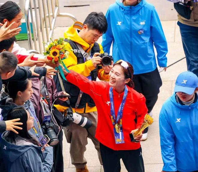 她对这条赛道太过熟悉。这一次,她也不会独自奔跑。黄菲说刚一出发,大家就非常默契地形成了一个阵容。一路上她都能听到跑友、观众等给她的加油。而她在长沙的搭档匪哥更是一路陪伴临近终点。