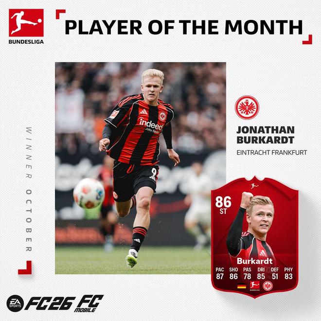 - 德甲 | 官方:法兰克福前锋伯卡特当选德甲10月最佳球员
