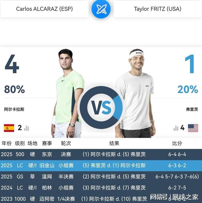 今晚九点,2025年ATP都灵年终总决赛吉米-康纳斯小组,开始进行第二轮比赛,一号种子、西班牙全能战士阿尔卡拉斯迎来了六号种子、美国奶爸弗里茨的挑战。对于志在夺取三场小组赛的胜利,从而锁定2025年终世界第一的阿尔卡拉斯来说,此战关系重大,几乎不容有失。
