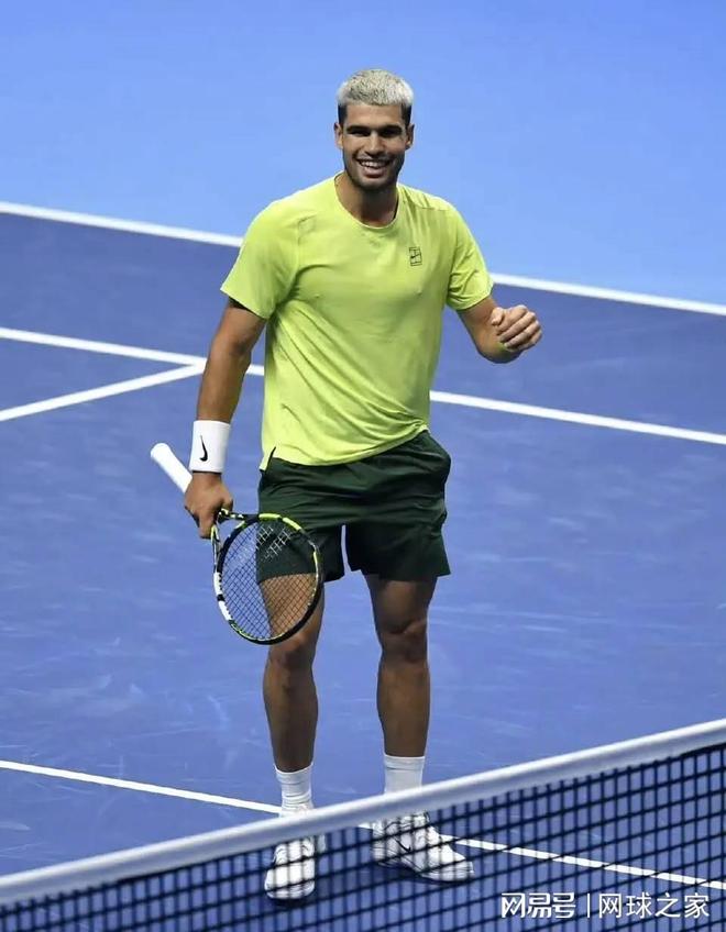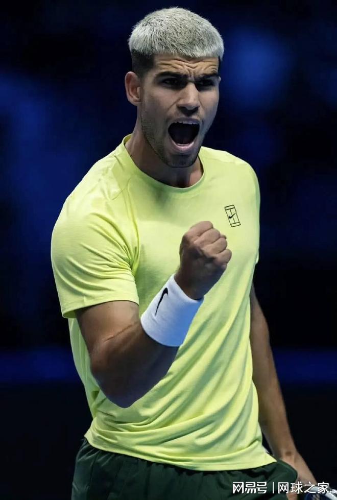前天晚上小组赛首轮比赛,阿尔卡拉斯鏖战1小时40分钟,两盘战胜了七号种子、澳大利亚小野兔德-米纳尔。这是阿尔卡拉斯从2023年起连续三次参加年终总决赛,首次在小组赛第一场比赛取得胜利。如果没有观看这场比赛,很容易被7:6 6:2的比分所迷惑,以为阿尔卡拉斯状态大好,两盘完胜对手。其实阿尔卡拉斯在比赛中起伏很大,非受迫性失误达到28个。特别是第一盘,阿尔卡拉斯非受迫性失误高达惊人的19个,非常辣眼睛,以致第一盘抢七的时候,阿尔卡拉斯以4:5落后,并且面临德-米纳尔的两个发球分。好在阿尔卡拉斯临危不乱,连得三分,反以7:5的小分拿下了第一盘抢七。
