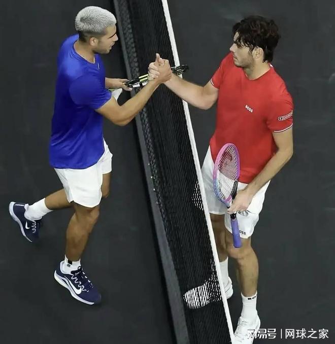不过,弗里茨也就是这么说说而已,真要上场迎战阿尔卡拉斯,还是毫不含糊,敢打敢拼。这不,阿尔卡拉斯刚在2025年9月美网夺冠、重返世界第一,两人就在同月的拉沃尔杯表演赛上遭遇。面对新任世界第一阿尔卡拉斯,弗里茨毫不畏惧,6:3 6:2,干净利落地两盘完胜阿尔卡拉斯,为世界队最后夺取拉沃尔杯冠军立下汗马功劳。