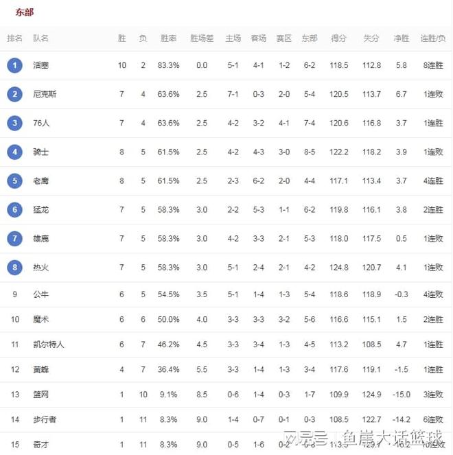 北京时间11月14日NBA进行了3场常规赛,这些比赛完毕之后NBA最新排名正式出炉。骑士在今天的比赛中对阵猛龙,尽管这场比赛骑士是背靠背出战,但是米切尔和莫布里并没有出战上一场比赛,因此这场比赛骑士还是有着不小的胜算,只不过让人没有想到的是这场比赛米切尔的进攻效率并不高,莫布里在这场比赛中的发挥也很不好,最终猛龙硬是爆冷击败了骑士,而在这场比赛前骑士本来排在东部第二的位置,可现在骑士也是给尼克斯、76人两队送温暖。现在尼克斯排在东部第二的位置,76人排在东部第三的位置,骑士直接掉到了东部第四的位置,猛龙在获得了2连胜后排在东部第六的位置。老鹰在今天的比赛中对阵爵士,自从特雷杨遭遇伤病后老鹰反而是打出了优异表现,毕竟没有了特雷杨这样明显的防守漏洞后,老鹰反而是在防守端打得越发出色,如今老鹰的防守效率更是排在联盟第五的位置,而在今天的比赛中老鹰也一度领先到18分,尽管之后的比赛爵士一度完成反超,可在约翰逊和奥孔武的发挥下,老鹰还是有惊无险的赢下了比赛胜利。这场比赛后老鹰也是获得了一波4连胜,现在老鹰也暂时排在东部第五的位置,至于爵士输掉比赛后排在西部第十的位置。太阳在今天的比赛中对阵步行者,步行者在本赛季是伤兵满营,所以他们的战绩非常的糟糕,更让步行者所难受的是,他们在本场比赛内史密斯也因伤退出比赛,可以说这真的是让步行者雪上加霜,同时这场比赛里步行者也打得非常艰难,反观太阳却有布克、狄龙站出来帮助球队扩大领先,甚至到了第四节比赛的时候太阳更是打出一波20-0,最终这场比赛早早失去悬念,太阳也获得了一场大胜。步行者输掉比赛后也已经是遭遇了6连败,如今步行者以1胜11负的战绩排在东部倒数第二的位置,至于太阳这里则是豪取5连胜排在西部第七的位置,而且现在的太阳还直接甩开了勇士,要知道之前勇士也是紧追太阳,但是现在太阳也是领先勇士1个胜场。而对于勇士来说,他们想要追上太阳也不容易,虽然勇士是刚刚击败马刺走出了泥潭,但是接下来勇士还会继续自己的客场之旅,同时勇士之所以击败马刺是依靠库里打出大爆发的表现,因此勇士指望库里场场打出这样的发挥也无疑是有些艰难的。而现在对于湖人、火箭两队来说,他们也真的是无路可退,毕竟排在西部第六的森林狼仅仅落后两队0.5个胜场,所以湖人和火箭想要保住自己的位置,那么他们两队就需要继续赢球才行。其中火箭在近期状态火热,尤其是随着谢泼德找到进攻状态的时候,火箭在进攻端的压力也得到了缓解,如今火箭也取得了一波2连胜,反观湖人是刚刚惨败雷霆,在比赛中东契奇、里夫斯都表现糟糕,因此对于湖人来说,他们如果想要走出现在的泥潭,那么东契奇和里夫斯就需要找到自己的进攻状态才行,否则湖人想要赢球并不是一件易事。