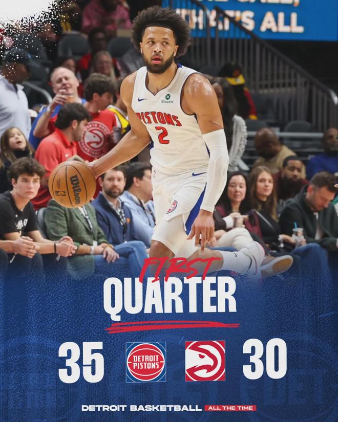 坎宁安25分6板10助2断、杜伦24分8板3助2断!今天坎宁安末节9分,本赛季末节一共轰下123分,高居联盟第一!活塞开季13胜2负,追平2005-06赛季的最佳开局。约翰逊25分8板9助3断、沃克24分3板3助、奥孔武21分3助3帽。