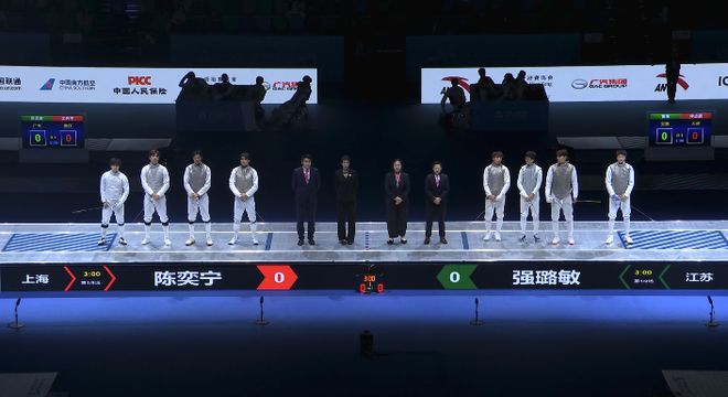十五运会击剑男子花剑团体铜牌赛中,由蔡金琿、陈奕宁、仇辰杰、吴斌组成的上海队45比43逆转战胜江苏队,收获一枚宝贵的铜牌。