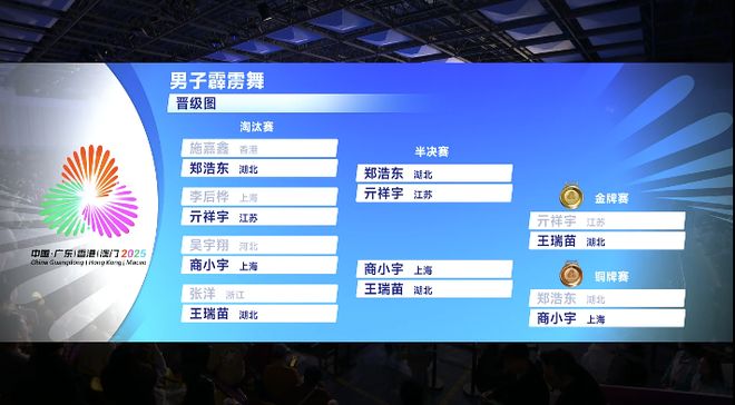 十五运会霹雳舞男子比赛中,上海运动员商小宇获得铜牌。湖北队王瑞苗获得金牌,江苏队亓祥宇摘得银牌。