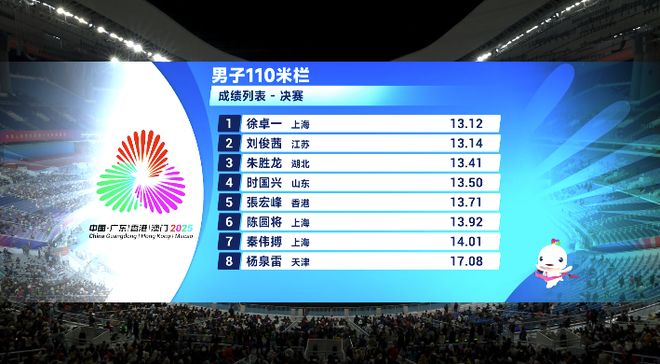 十五运会田径男子110米栏决赛中,“眼镜飞人”徐卓一以13秒12的成绩刷新个人最佳成绩,夺得冠军,成就了上海队在该项目全运舞台上的九连冠!