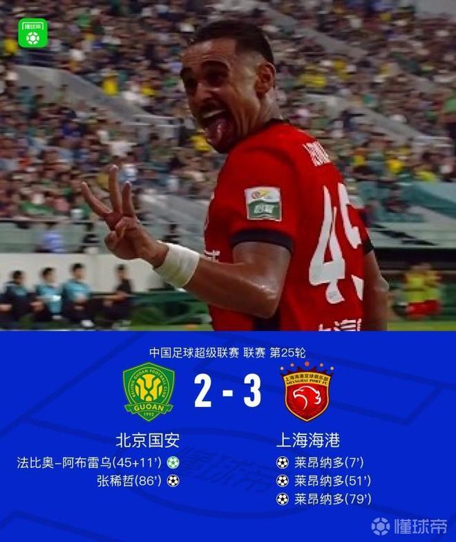 第二十五轮 北京国安2-3上海海港又是一场焦点大战,国安在主场迎战上海海港。在联赛进入下半场后,国安的状态有所起伏,莱昂纳多在工体完成戴帽让国安逐渐退出了争冠行列,时任国安主帅塞蒂恩也成为了球迷口诛笔伐的对象。