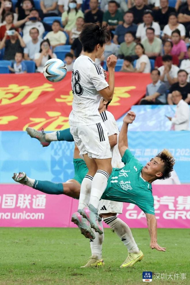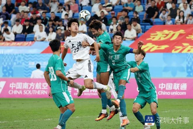 2025年11月8日,十五运会男子足球U20淘汰赛,上海队(白)以3:2战胜新疆队晋级四强,最后上海队获得银牌。