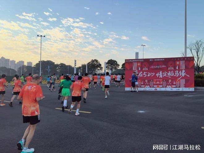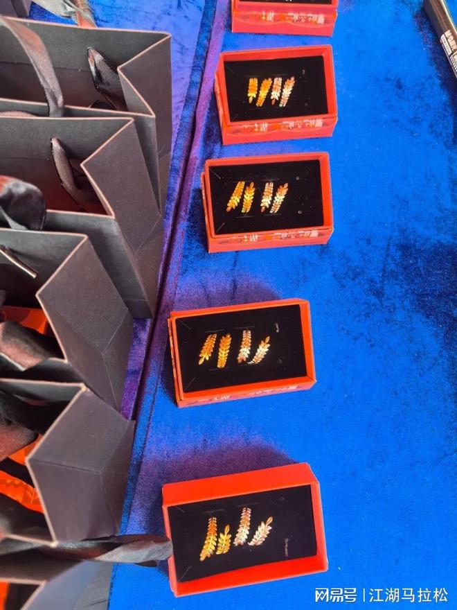 稻田自带浪漫属性,高明稻田马设有情侣组,赛道中途的5.2K、13.14K设有专门打卡点,完赛后看到的稻穗对戒,甚是别致。