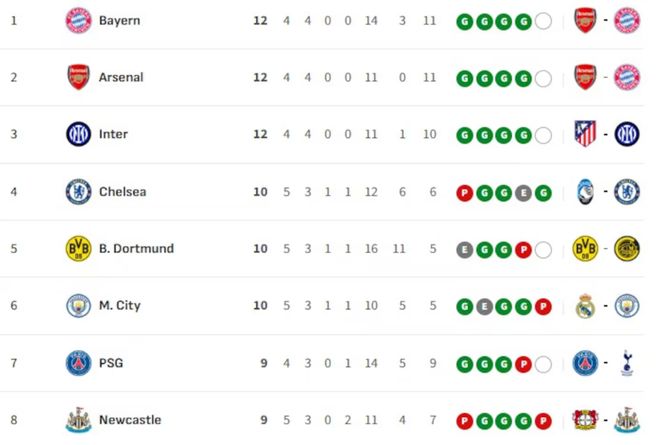 随着冬季临近,欧冠联赛阶段进入关键赛程。36支球队的命运仍存变数,但数学概率已开始勾勒出清晰轮廓。目前仅剩拜仁、阿森纳与国际米兰三支球队保持全胜战绩,同积12分领跑积分榜。此前不败的曼城遭遇首败,皇家马德里跌出前八名,与巴塞罗那、马德里竞技共同落入附加赛区。英超已实现对西甲的全面碾压。英超上赛季拿到29.464分,打破欧洲联赛单赛季积分的最高纪录。如今,6队出征欧冠,强势丝毫都没有减弱。24场17胜4平3负,胜率刚好超过七成,比上赛季的21胜4平7负,65%的胜率还要高。利物浦尽管在英超跌出前十名,但是欧冠却挺进前八,纽卡斯尔差别更大,英超第14名,欧冠第6名。参考上赛季数据,直接晋级16强需16分(如维拉),跻身24强季后赛门槛为11分(如布鲁日)。以下为西甲各队出线形势详解:巴塞罗那:命悬一线斯坦福桥败走切尔西后,巴萨连续两年冲击前八的征程陷入困境。尽管近期先后负于巴黎、战平布鲁日再输蓝军,弗里克球队仍存直接晋级可能,但已无犯错余地。目前7分在手的他们若想触及16分安全线,剩余三场需全胜收官。利好在于赛程相对友好:主场迎战法兰克福、客战布拉格斯拉维亚、末轮主场对阵哥本哈根。跌出24强的风险极低(仅需4分即可达标),但想避开附加赛唯有全胜一途。皇家马德里:稳中求进安菲尔德败走利物浦引发的"危机"并未动摇欧冠根基。皇马前四轮豪取9分稳居第9名,虽然后防伤病潮困扰(本轮客战奥林匹亚科斯堪忧),但剩余赛程仍握主动权。接连迎战曼城(主场)、摩纳哥(主场)与本菲卡(客场)的恶战中,只需再取7分(2胜1平)即可锁定16分安全线。马德里竞技:决战定乾坤两度折戟英格兰(遭利物浦绝杀、被阿森纳击溃)让床单军团冲击前八的前景蒙阴。目前6分在手的他们,本周与国米的直接对话将成生死战。剩余赛程包括客战埃因霍温、远征加拉塔萨雷及主场迎战博多闪耀。若复制上赛季18分佳绩需剩余四场全胜,但确保季后赛席位(需5分)显然更为务实。毕尔巴鄂竞技:希望渺茫欧冠回归之旅濒临终结——五轮仅积4分,剩余赛程更为凶险:主场迎战巴黎、客战亚特兰大、末轮火拼葡萄牙体育。想触及11分季后赛门槛需豪取7分(2胜1平),任何闪失都将导致提前出局。比利亚雷亚尔:奇迹待续黄色潜艇的欧冠回归之旅近乎噩梦:五轮仅取1分,理论最高积分仅10分(需剩余全胜),已低于上赛季季后赛门槛。剩余对手哥本哈根(主场)、阿贾克斯(主场)与勒沃库森(客场)虽存抢分可能,但晋级需要多重奇迹叠加。直接晋级16强球队(当前前8名): 拜仁慕尼黑、阿森纳、国际米兰、切尔西、多特蒙德、曼城、巴黎圣日耳曼、纽卡斯尔联进入附加赛球队(第9-24名): 皇家马德里、利物浦、加拉塔萨里、热刺、勒沃库森、葡萄牙体育、巴塞罗那、卡拉巴赫、亚特兰大、那不勒斯、马赛、马德里竞技、尤文图斯、圣吉罗斯、埃因霍温、摩纳哥最后12名: 帕福斯、布鲁日、法兰克福、毕尔巴鄂竞技、本菲卡、布拉格斯拉维亚、博多闪耀、奥林匹亚科斯、比利亚雷亚尔、哥本哈根、凯拉特、阿贾克斯。