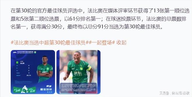 - 中超 | 赛季唯一亮点!国安锋霸获中超双荣誉,MVP要助球队拿下最后一冠