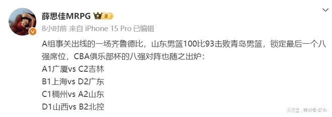 - CBA | CBA杯八强对阵:上海vs广东浙江vs山东广厦vs吉林山西vs北控