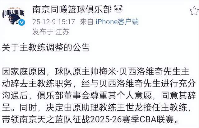 - CBA | 南京官宣换帅引热议!媒体:王世龙加入同曦起贝帅的命运就已注定