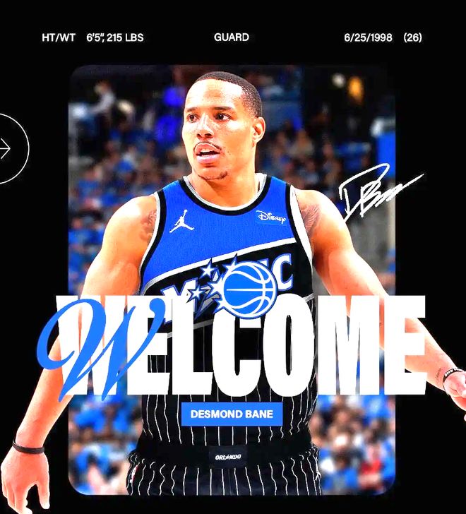除了顶级的投射能力,贝恩的防守属性也与魔术的体系完美契合。魔术本身就是一支防守能力出色的球队,而贝恩虽臂展较短,移动和协防能力受限于臂展存在短板,但他足够强壮,防守判断力出众且防守习惯极佳。尽管并非巅峰克莱那样的顶级3D球员,但在魔术的团队防守体系中,他已然成为可靠的外线屏障。攻防两端的适配性,让魔术下定决心豪赌一把。
