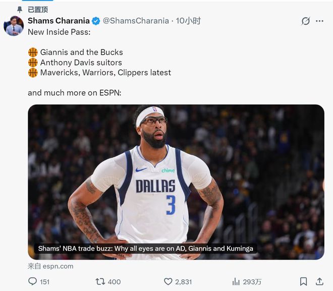 一场围绕着安东尼·戴维斯的未来、牵动多支球队神经的博弈战,在达拉斯悄然打响。据NBA头号爆料记者沙姆斯·查拉尼亚最新爆料,浓眉的经纪人、业内大佬里奇·保罗已经与独行侠临时管理层团队会面,并扔下了一颗重磅炸弹:必须在续约或交易之间做出明确选择,不再浪费时间。