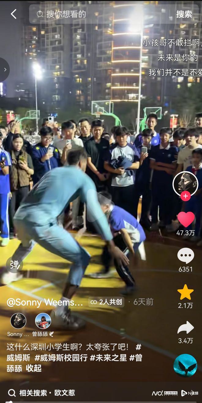 社交平台网友留言截图。奥一新闻记者前往宝安中学(集团)海滨中学专访,让我们探寻这位篮球少年技惊四座背后的故事!01深圳小孩哥街头偶遇CBA球星丝滑过招后被赞为“未来之星”本想过去凑凑热闹,没想到单挑CBA球星竟“一战成名”!
