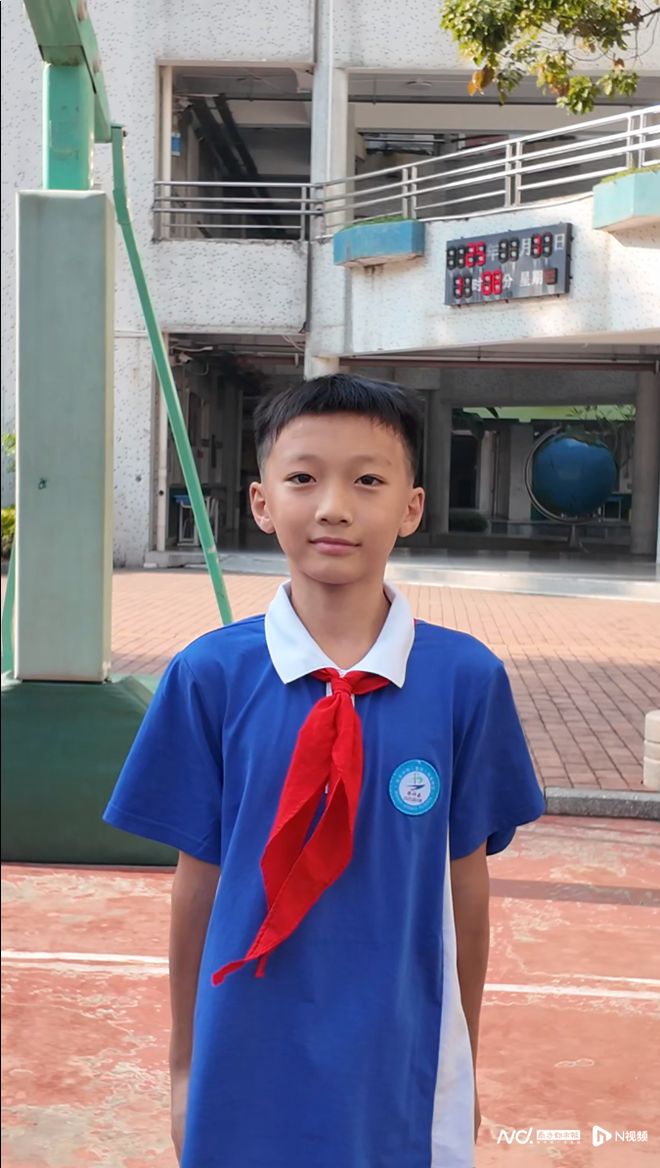 宝安中学(集团)海滨中学初一(1)班蔡梓嘉同学接受记者采访。12月5日晚上,蔡梓嘉原本和朋友约了打球,路过宝安体育馆恰巧碰见CBA球星威姆斯、篮球博主曾舔舔被人群围得水泄不通。当曾舔舔喊话“谁想上来单挑?”,他自告奋勇,被朋友们一把推上球场。由于身形瘦小,身旁有位叔叔还担心他会被职业大佬“压扁”。面对近两米高的对手,身高一米五的蔡梓嘉上场前便琢磨起来:直接投篮大概率会被“盖帽”,于是他决定采取“声东击西”的战术。“想弄个假动作晃飞他”。几番回合下来,高大的威姆斯竟被他灵活的节奏晃得原地“蒙圈”,还不慎被绊倒。随后对阵曾舔舔,蔡梓嘉也没丝毫怯场,依旧发挥出灵活轻便的优势。弹射起步、连贯丝滑的上篮操作,一次次点燃现场气氛,引得围观人群惊呼不断、接连沸腾。“当时好多人围观,又兴奋又比平时训练紧张一些!”过招之后,威姆斯也用英语称赞他是“真正的未来之星、中国篮球的未来”。对于这份认可,蔡梓嘉表示“这对我来说既是荣誉,也是前进的动力。我会继续努力提升自己,只要努力,一定能成为自己领域的未来之星”。