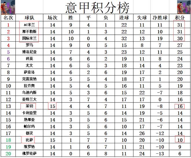 - 意甲 | 意甲最新积分战报莱切赢保级大战AC米兰那不勒斯国米争榜首