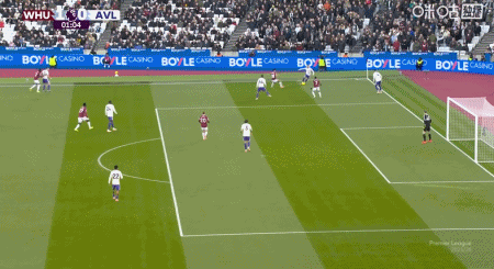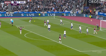 上咪咕独家看英超第24分钟,波茨助攻,鲍恩门前点射破门,西汉姆联2-1维拉