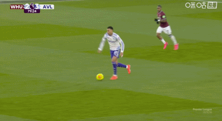 上咪咕独家看英超第50分钟,蒂勒曼斯传中,罗杰斯停球射门一气呵成,维拉2-2西汉姆联