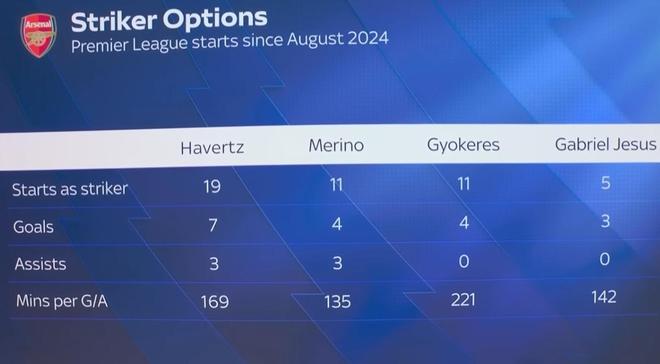 卡拉格:前路还很漫长,阿森纳需要在心理层面做出调整,甚至可以说是一种自我修复。赛季还有很长的路要走,曼城随时可能反超他们一两个积分,但这并非世界末日。毕竟现在赛季才刚开始。不过,阿森纳身上确实笼罩着一种紧张感,这也很自然——他们已经太久没赢得联赛冠军了。我能理解这种情绪,但从现在到五月,他们必须妥善应对这份压力。主持人:吉鲁,你如何看待这个问题?你认为这个赛季阿森纳能结束漫长的等待吗?吉鲁:希望如此。我真心祝愿他们。不过我们以前通常会在二、三月左右感到紧张,记得2016年莱斯特城夺冠时,我们就在那段时间有些崩盘。所以,如果阿森纳能够保持节奏,并且将和曼城的争冠悬念维持到……大概三月中旬,我认为机会就会大很多。卡拉格:我想追问一下:当你提到心理层面受影响时,你指的是更衣室内的球员,还是也包括了球迷、整体氛围以及大家因可能失去领先优势而产生的紧张情绪?不,不,我指的是我们球员。而且从数据上看,你可以看到,无论是去年还是前年,阿森纳都在某个时间点之前处于争冠行列,但之后都退出了冠军争夺,主要是因为稳定性不够。往往就是在二、三月那个阶段。现在说他们能否夺冠还为时过早,但每一场三分都至关重要。主持人:之前一直有讨论:阿森纳是否拥有能带领他们夺冠的前锋?即使当年你效力时,这个问题也存在。如今他们在哲凯赖什身上投入重金,就是希望他能填补这个空缺,成为带领球队走向冠军的那个人。他上周末对阵狼队时出场了,你对他目前身穿阿森纳球衣的表现有何评价?吉鲁:我喜欢他的能力和特点。他身体强壮,能转身完成射门。我觉得只需要给他一点时间,他具备一名优秀前锋在顶级赛事所需的一切素质。他需要更多比赛时间和信心,而我相信阿尔特塔会给他机会。主持人:阿尔特塔现在的确拥有更多选择,可以说是四种锋线方案:热苏斯已经回归,哈弗茨也预计在2026年初、也就是几周后复出。这是他们自上赛季以来在英超的数据贡献。底部显示的是这四名球员“每分钟参与进球(进球+助攻)”的效率。可以看出,梅里诺目前可能是效率最高的,而哲凯赖什暂时最低。在这四人中,你认为阿尔特塔最终会依靠谁帮助球队赢得本赛季冠军?