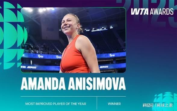 年度进步最快球员大奖归属于美国名将阿尼西莫娃。本赛季,阿尼西莫娃两进大满贯决赛,拿到两个1000赛冠军,世界排名首进前十,年终排名升至世界第四位,进步真是最快。
