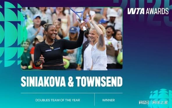 年度最佳双打组合奖被西尼亚科娃/汤森德组合收入囊中。今年,两人搭档获得澳网冠军、美网亚军,汤森德首登双打世界第一,而西尼亚科娃则是第五次加冕年终双打世界第一,她们的当选也是理所应当。