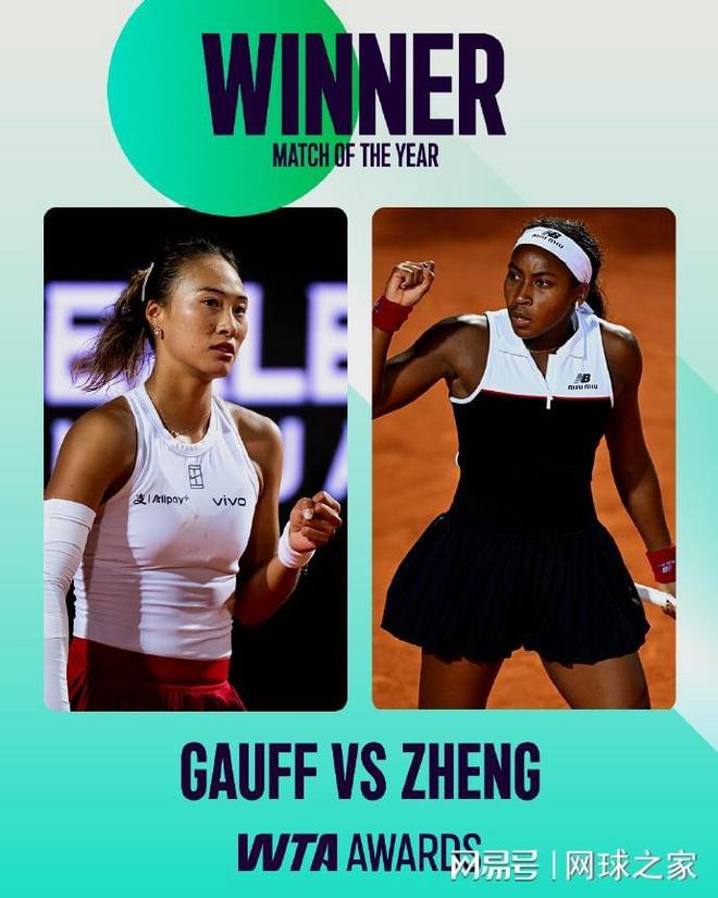 由球迷评选的WTA最受欢迎单打球员奖则被中国一姐郑钦文获得,这是她连续第二年当选,蝉联了人气女王。不仅如此,郑钦文与美国一姐高芙在罗马站半决赛的较量还当选2025赛季WTA年度对决。稍显遗憾的是,当时小郑同学1-2输给了高芙。