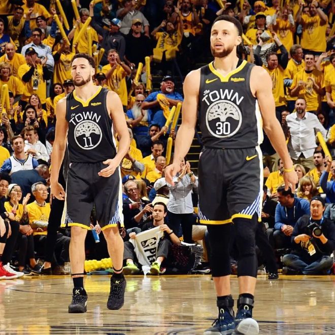 第二位:水花兄弟(库里&汤普森)——改写时代的三分风暴库里与汤普森组成的水花兄弟,是NBA历史上最具影响力的三分组合,他们用极致的三分球能力改写了联盟的打法,掀起了小球时代的三分风暴。两人都是历史级别的三分神射手,射程覆盖全场,他们的存在极大地提升了球队的进攻空间与竞争力。汤普森的无球跑动能力极为出色,能凭借精准的切入和接球投篮为球队贡献火力;库里则是有球、无球都能高效发挥的全能射手,不讲理的三分球总能瞬间改变比赛局势。水花兄弟的最大优势在于,他们不需要占用过多球权,就能打出令人难以置信的进攻表现。两人的瞬间伤害能力,是所有组合都无法企及的——因为三分球本就比两分球效率更高,再加上汤普森的神级输出与库里的不讲理三分,让他们在巅峰时期成为最令人恐惧的存在,被誉为“风暴组合”。凭借这对组合的威慑力,勇士四次夺得总冠军,建立了辉煌的王朝。水花兄弟不仅改变了人们对三分球的认知,更引领了联盟的战术潮流,他们的影响力早已超越了比赛本身。