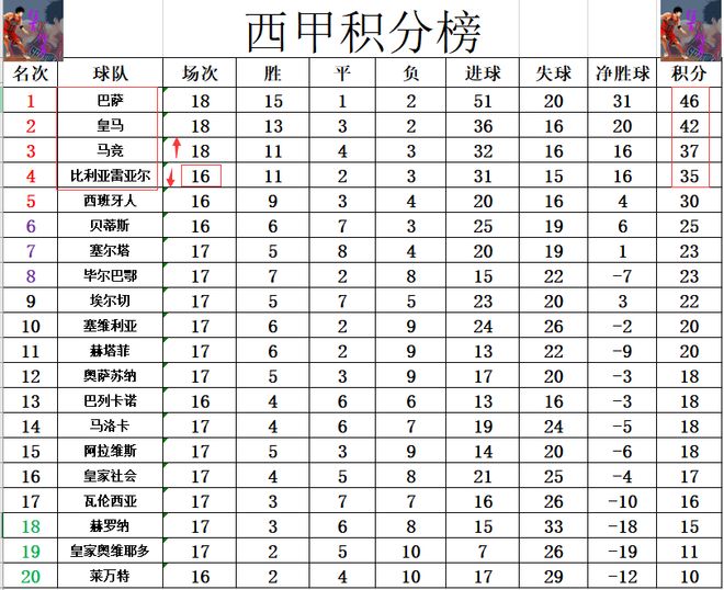 - 西甲 | 西甲第17轮结束了9场比赛,最新积分榜如下!