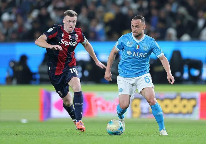 在此前的半决赛中,那不勒斯淘汰了AC米兰,博洛尼亚则击败国际米兰,阻止了上赛季意甲决赛的重演。“冠军对阵杯赛冠军”,这样的决赛对阵堪称逻辑上的完美搭配。不过本场比赛的举办地引发争议:可容纳2.5万名观众的球场出现大量空座,未能座无虚席。加之此前AC米兰与科莫的澳大利亚友谊赛丑闻(先是确认举办,后因财务风险及亚足联相关规定取消),这一场景进一步为“意大利赛事移出本土举办”的反对者提供了论据。2025年两队已交手两次:4月双方1-1战平,11月博洛尼亚在主场以2-0击败那不勒斯。在过去六次交锋中,那不勒斯仅取得一场胜利,因此中立球迷本期待决赛能上演一场势均力敌的较量,但最终未能如愿。