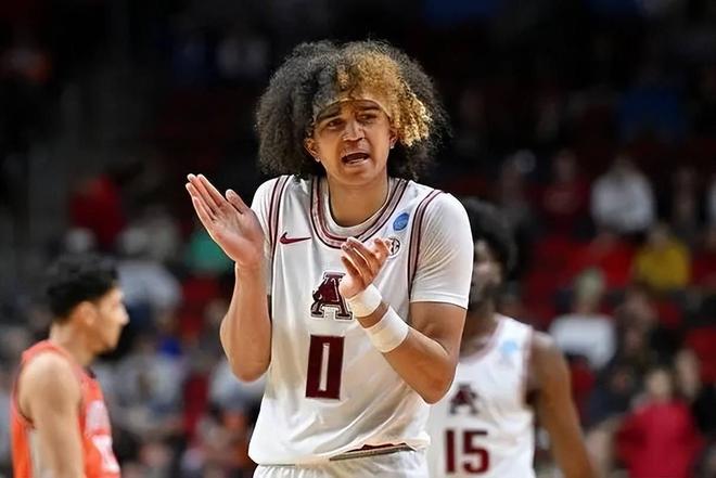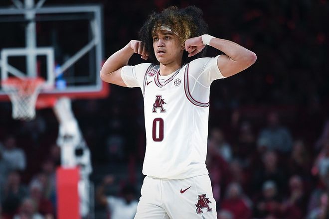 与此同时,不少媒体也是将他列入到了五星高中生的名单,并且将他视为了全美第一控卫。不过,在面对海量的NCAA顶级球队递出的橄榄枝之时,他却选择了加盟阿肯色大学。虽然阿肯色大学的竞争力没有那么突出,但他还是首发出战了36场比赛,场均贡献12.8分、5.1个篮板、3.9次助攻、2.1次抢断,打破了包括出场次数、首发次数、总上场时间、抢断等多项学校历史的新生记录,并且还是唯一一位在那一年,可以在SEC联盟之中,五项个人数据全部排名前25位的球员。所以,他在大一赛季结束后,不仅入选了SEC联盟的最佳第二阵容,还拿到了全美最佳大一新生奖。此外,在2022年的夏天,他跟随美国U18青年队出战了美锦赛,场均可以贡献4.7分、7.8个篮板、4.2次助攻的数据,帮助球队拿到了金牌。所以在这种情况下,他选择了在2023年的夏天,参加NBA的选秀大会。