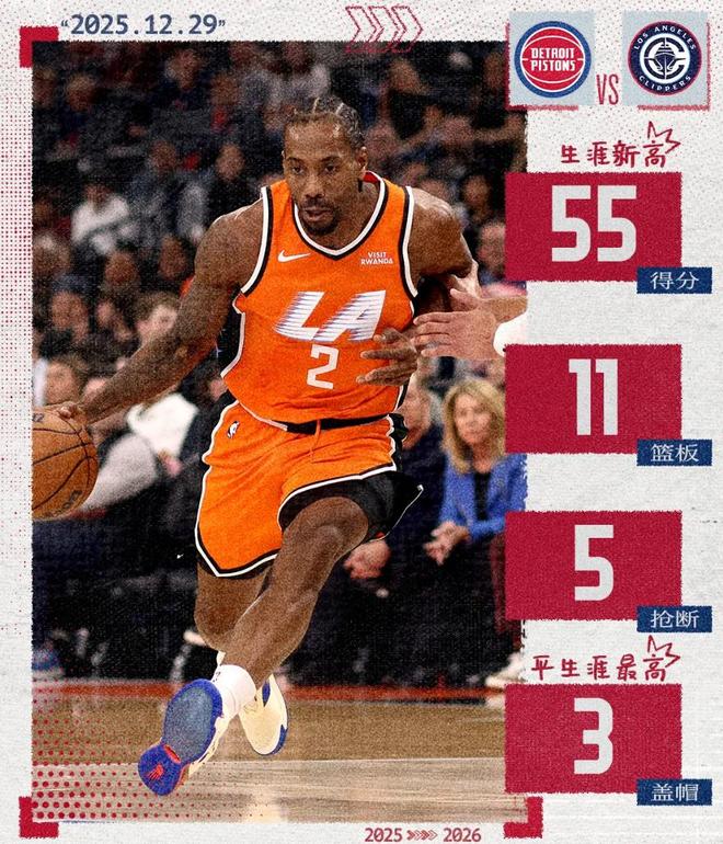 - NBA | 伦纳德55分&单节26分创生涯新高追平快船队史单场得分纪录