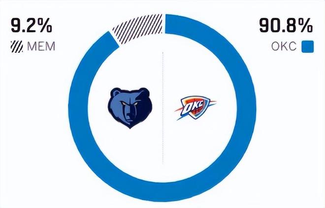 赛前,美媒ESPN对本场比赛进行了胜率预测,雷霆队的胜率依旧高达90.8%,占据绝对上风,灰熊队胜率则仅有可怜的9.2%,这对比还是挺刺眼的。