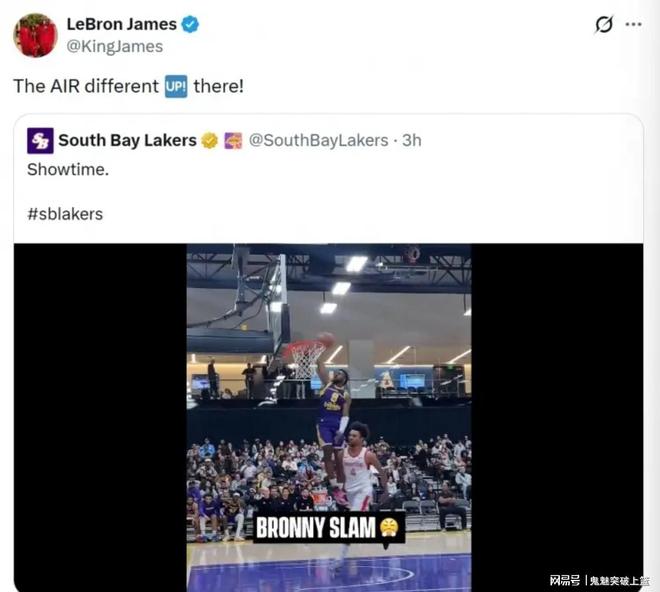 对此,勒布朗詹姆斯转发评论道:“上面的空气与众不同啊!”。由此可见,老詹对布朗尼的这一攻防表现是感到颇为得意!