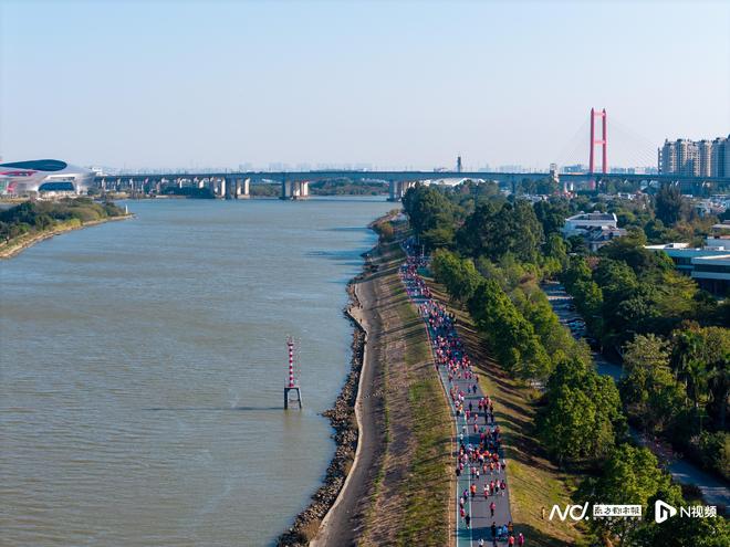 顺德容马42.195公里环岛赛道,串联起一城滨水跑道的自然风光、现代都市风格的文旅商圈、“制造业当家”发展宏图。跑者们一路途经文塔公园、国家级高新技术产业开发区、顺德工业发展馆、战新区、柴油机1959文创园、容桂渔人码头等标志性地标。赛道沿途设置超过70个氛围点,从气势恢宏的“百狮阵”,到全民K歌舞台、声浪能量站等,“助威天团”纷纷拿出“看家本领”为跑友呐喊加油。沿途还有独具特色的岸龙展示、塔香展示、书画长廊等,构成了绵延42公里的“露天文化长廊”,让跑者在奔跑中沉浸式感受岭南风韵。