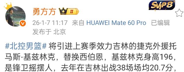 北控男篮可以说是本赛季最让球迷失望的球队之一了,客场输给天津男篮之后,球队已经开始进行了调整,张斌成为球队顾问,传闻张庆鹏下课是时间问题,另外就是外援,上赛季在吉林男篮效力的托马斯基兹林克确定加盟北控男篮。