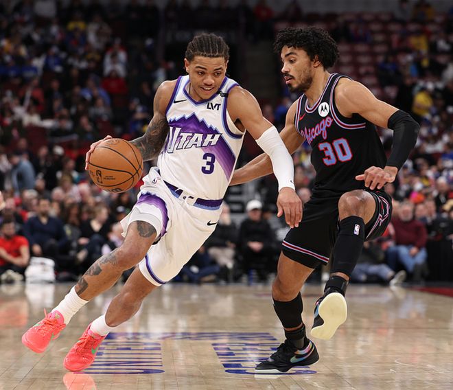 爵士客场挑战公牛,爵士少了马尔卡宁、凯斯勒、努基,公牛少了吉迪、科林斯,经过四节大战公牛以2分优势险胜爵士。武切维奇22中14得到35分7板5助2帽,爵士方面森萨博22中15(三分10中5)得到43分5板2助2断,乔治17中8得到25分3板7助。