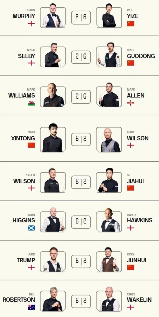 - 体育战报 | 奇怪的默契增加了!斯诺克大师赛首轮比分全是62三名中国选手闯入八强