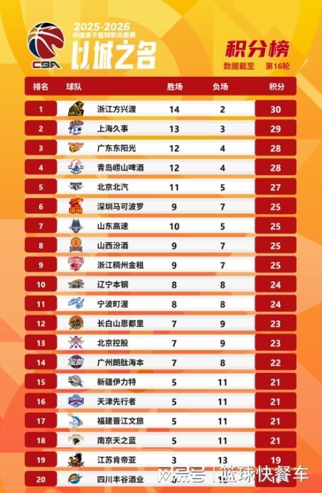 - CBA | CBA积分榜最新排名出炉!辽篮被双杀跌出前8:广东第3新疆第15
