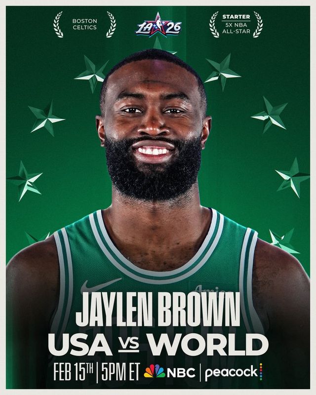 杰伦-布朗成为东部全明星首发,这是他生涯第5次入选全明星,也是连续第4年入选。赛季至今,杰伦-布朗场均29.7分6.4篮板4.8助攻。