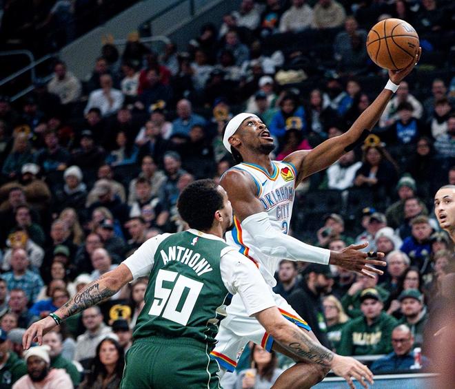 雷霆队轻松打爆雄鹿队,SGA如入无人之境,佛挡杀佛神挡杀神,无差别单打解决各种对位,半场送出平生涯纪录的8次助攻盘活全队,突出一个从从容容游刃有余,打得对手屁滚尿流连滚带爬!全场比赛下来,SGA出战33分钟,19投16中(三分球2中2),罚球7中6,爆砍40分+7篮板+11助攻+1抢断的豪华数据,场上正负值高达+19。与此同时,SGA一战刷爆多项NBA纪录。